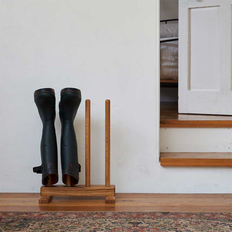 Handmade to last a lifetime, our Oak Wellington Boot Rack is handcrafted in our Cornwall workshop using solid Oak from managed forests. Perfect for keeping your wellies organised and aired out after a muddy stomp.